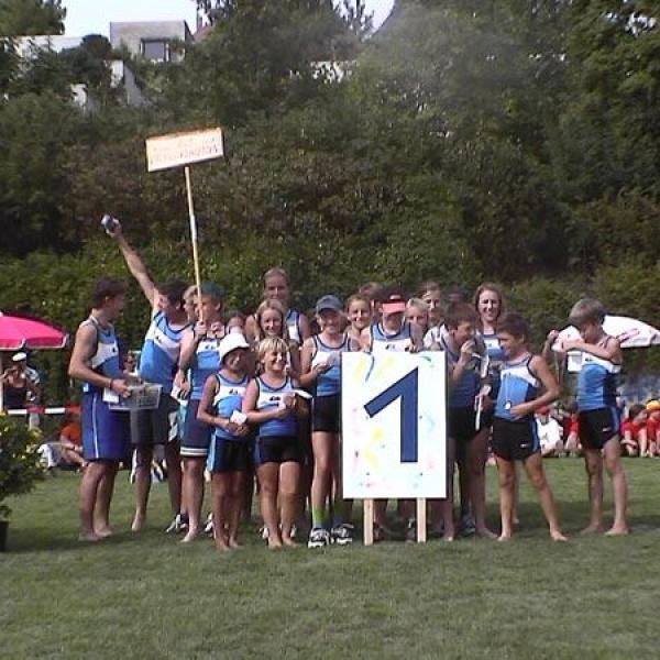 Wie immer bei solch schönem Wetter, gab es nach den Stafetten, als Überbrückung bis zur Rangverkündigung eine Wasserschlacht. Nebst dem Leiterteam, konnte sich auch Martin Hertig nicht der obligaten Dusche entziehen. Einzig Barbara, wegen der Kamera, blieb trocken.